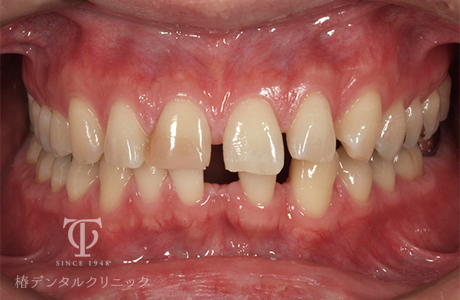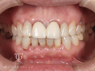 前歯をきれいにしたいということで来院されました。歯周病治療と部分矯正治療を行った後にオールセラミックにて修復しました。