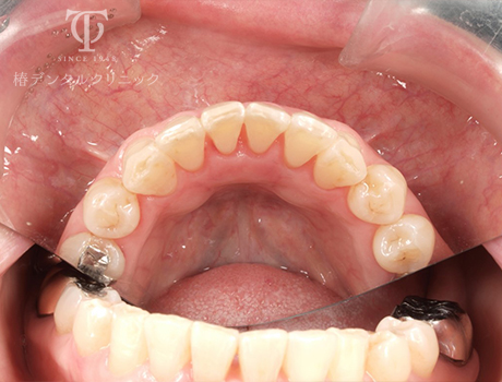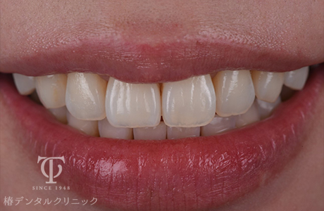 部分矯正治療で歯のポジションを整え、下顎はオールセラミックブリッジ、上顎はラミネートベニアにて修復しました。