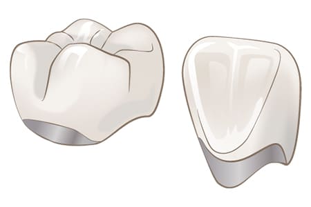 内冠に金属を使用するので、年数が経つと金属との接着面の歯ぐきが黒ずむこともある。金属アレルギーのリスクがある。過度の力が加わると破折することもある。保険適応外である。