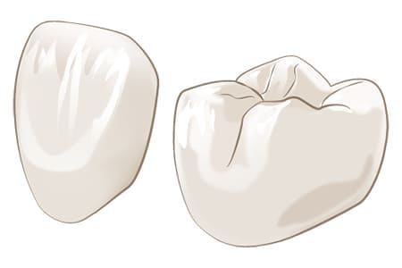 見た目が天然歯に近い白い色を出せる。内冠に金属をしようし外冠にセラミックを使用するので強度が強い。