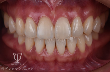 前歯をきれいにしたいということで来院されました。歯周病治療と部分矯正治療を行った後にオールセラミックにて修復しました。