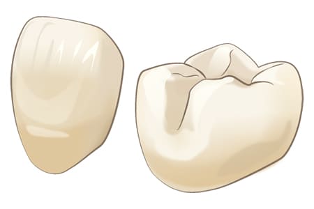 見た目が天然歯に近い白い色を出せる。内冠に金属をしようし外冠にセラミックを使用するので強度が強い。