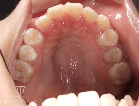 歯並びを治したいとのことで来院されました。右上犬歯の萌出スペースが不足していた為、ペンデックスという装置で大臼歯を後方に移動して治療しました。